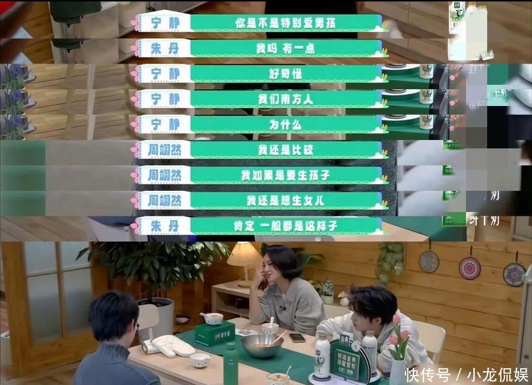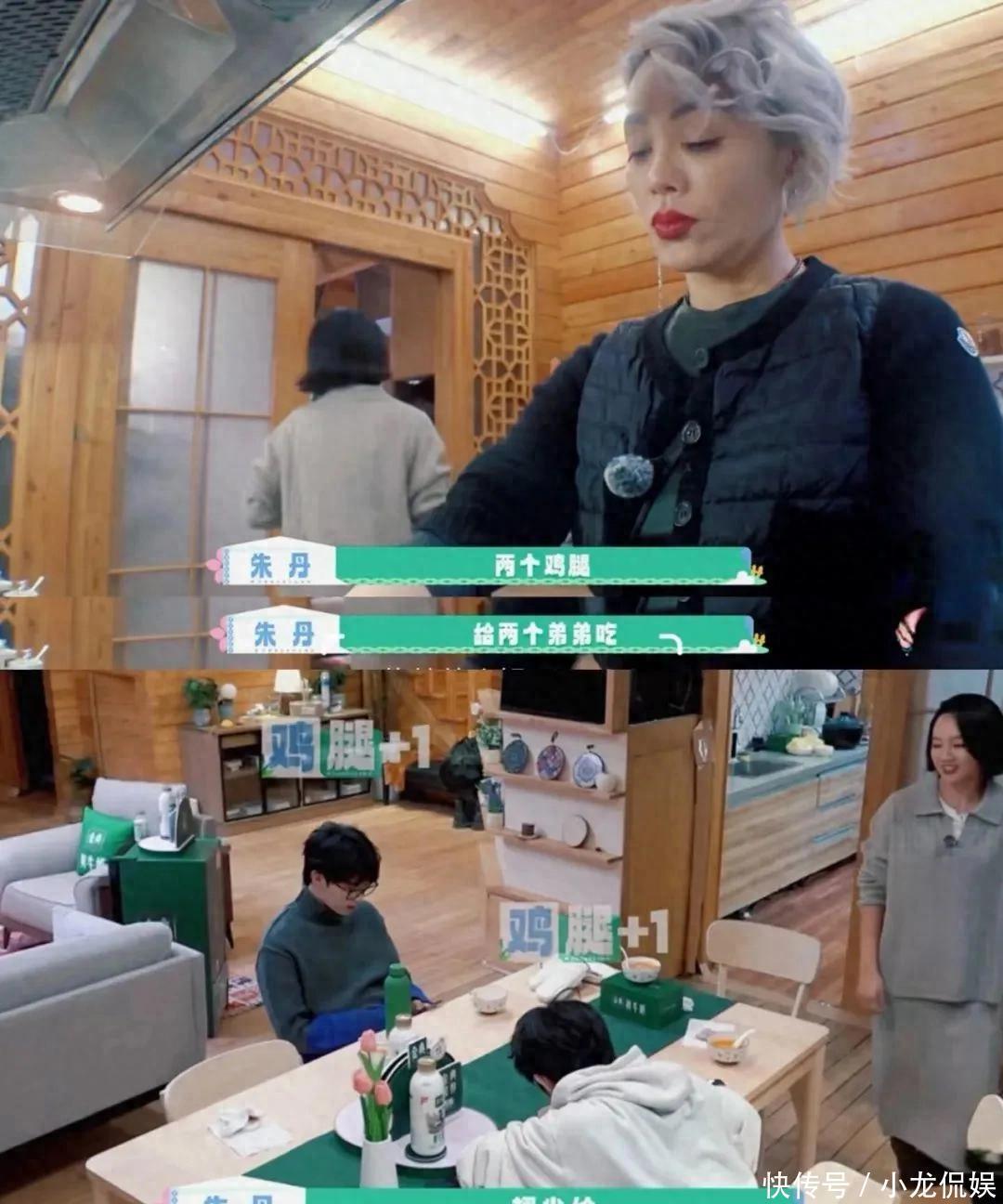在节目中她就提到烤鸡腿,说两个鸡腿要给两个弟弟的吃,两个弟弟要长体格,而鸡翅尖就给女嘉宾宁静和欧阳娣娣吃。